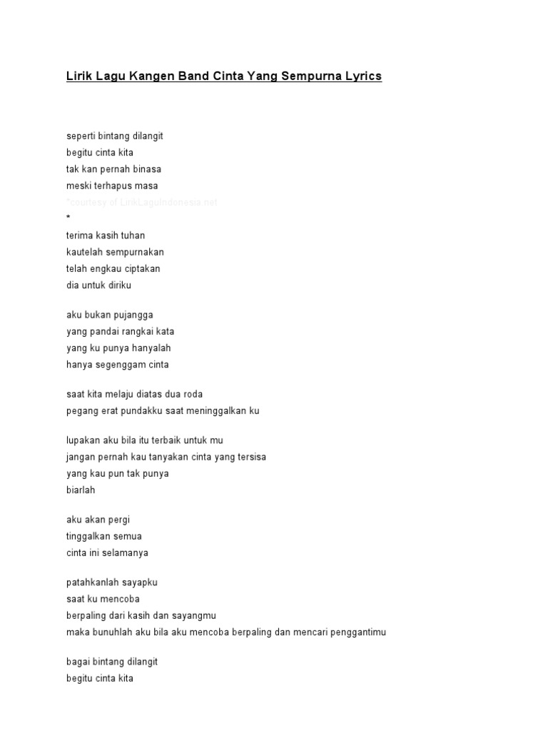 Lirik Lagu Kangen Band Cinta Yang Sempurna Lyrics