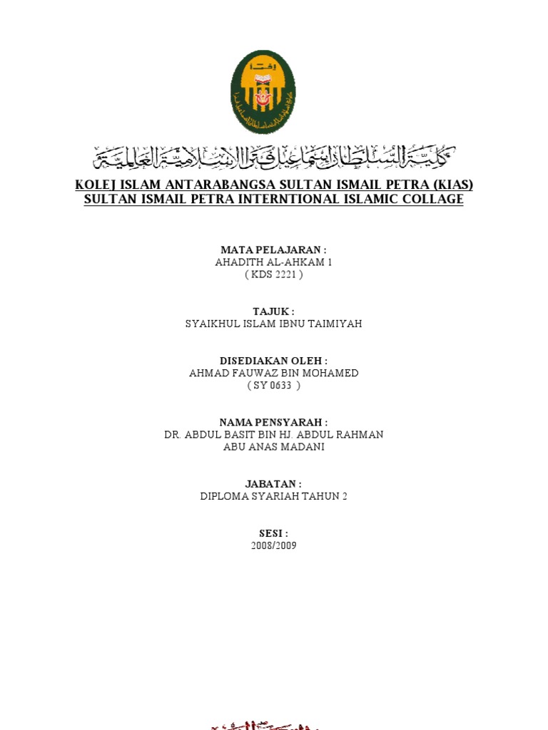 Doc Kolej Islam Antarabangsa Sultan Ismail Petra Kias Azwan Adlan Academia Edu