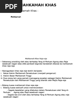 1 mahkamah khas raja raja mempunyai bidang kuasa ekslusif untuk membicarakan. Berikut ialah beberapa catatan mengenai keanggotaan mahkamah khas raja raja. In the last few months several novel legal issues relating to the sultan of kelantan and his royal family have ended up in courts. Mahkamah persekutuan mahkamah tinggi mahkamah rayuan mahkamah seksyen mahkamah majistret mahkamah syariah mahkamah khas raja raja.