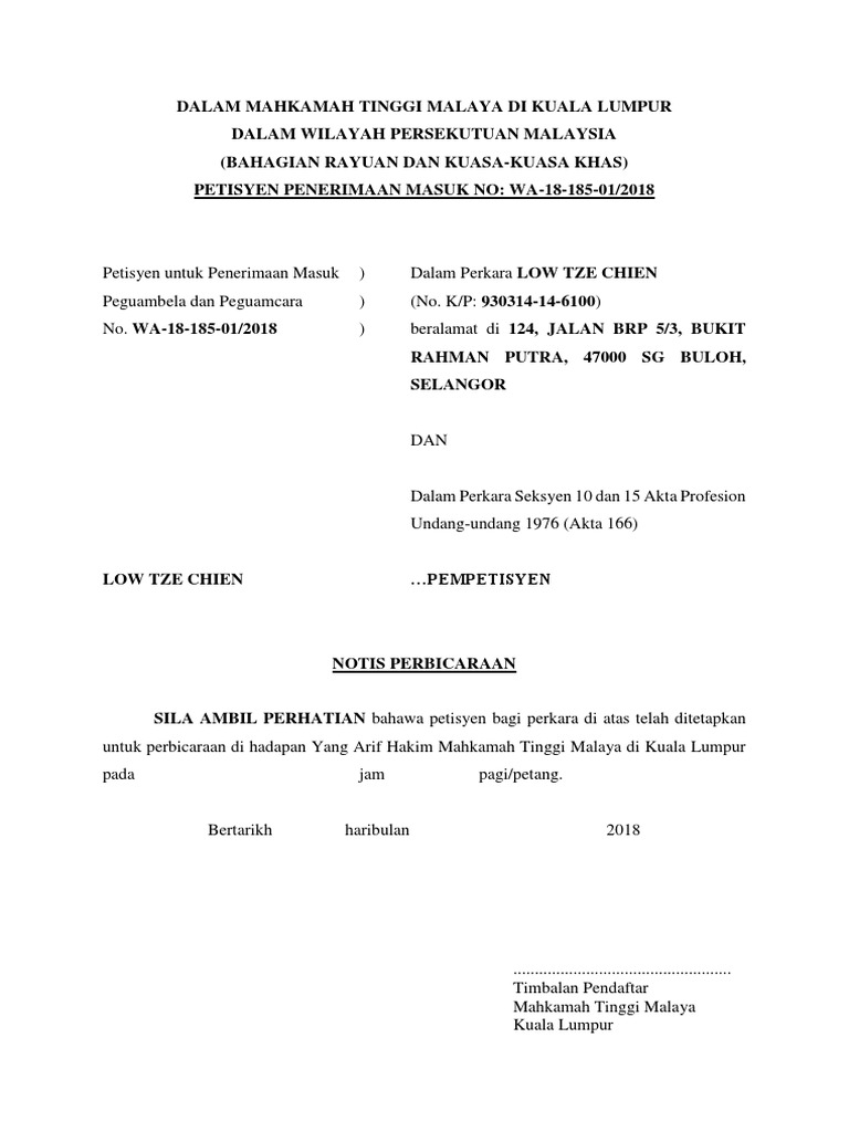 Mahkamah tinggi kuala lumpur bahagian rayuan dan kuasa kuasa khas. Dalam mahkamah tinggi malaya di kuala lumpur bahagian rayuan dan kuasa kuasa khas petisyen untuk penerimaan masuk sebagai peguambela dan peguamcara no. Sejarah mkh kuala lumpur. Aras 2 sayap kiri kompleks mahkamah kuala lumpur jalan tuanku abdul halim 50506 kuala lumpur. Alcatel lucent malaysia sdn bhd dahulunya dikenali sebagai alcatel network systems malaysia sdn bhd responden 20 2.