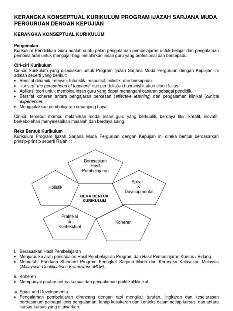Kerangka Konseptual Kurikulum Program Ijazah Sarjana Muda Perguruan Dengan Kepujian