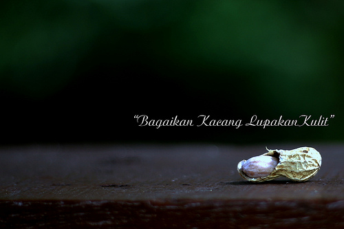 Bagai kacang lupakan kulit. Peribahasa jangan menjadi seperti kacang lupakan kulit atau ulat lupakan daun. The saying proverb is forgetting the skin. Orang yang lupa asal usul keturunannya.