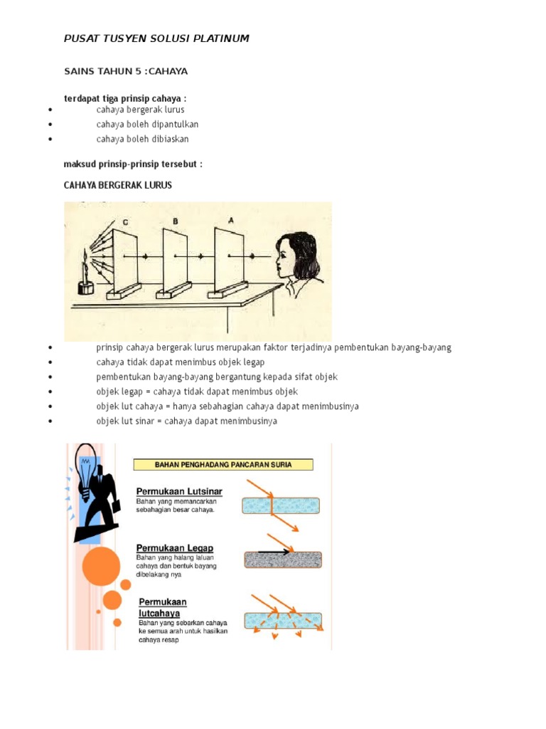 Nota Sains Tahun 4 Unit 5 Sifat Cahaya Chang Tun Kuet