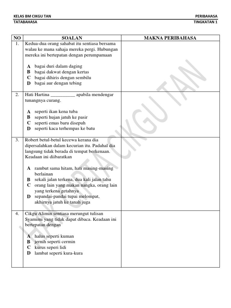 Latihan Peribahasa 1 10 F1