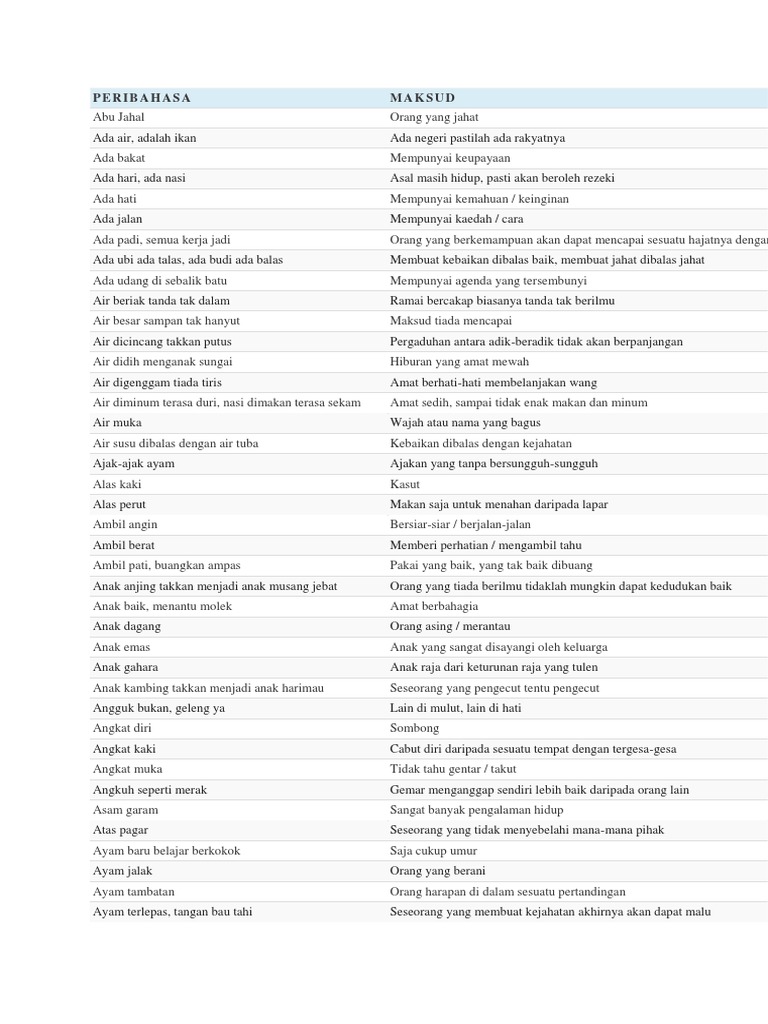Senarai Peribahasa Melayu Dan Maksudnya Rujukan Bahasa Melayu Upsr Pt3 Spm Dan Stpm Pendidikanmalaysia Com