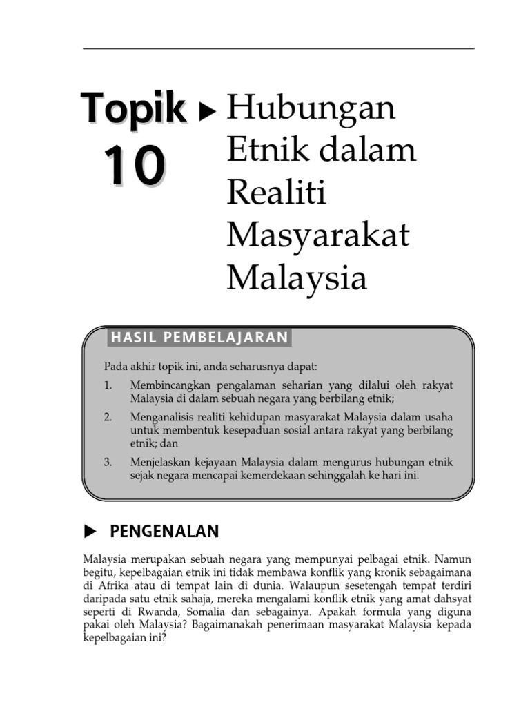 Hasil pembelajaran hubungan etnik dipengaruhi bukan sahaja dipengaruhi unsur etnik malah unsur unsur sosial yang lain mengetahui perspektif kesepaduan sosial dapat menjelaskan konsep perpaduan dalam kepelbagaian. Peristiwa yang majoriti rakyat malaysia lupa atau tidak tahu ialah tercetusnya rusuhan etnik melayu cina di singapura pada 21 julai dan 3 september 1964 ketika singapura masih dalam malaysia. Era kesepaduan sosial 1971 2011. Malaysia sebenarnya telah dibentuk oleh kesepaduan dalam kepelbagaian cohesion in diversity dengan destinasi terakhirnya unity in diversity atau perpaduan nasional.