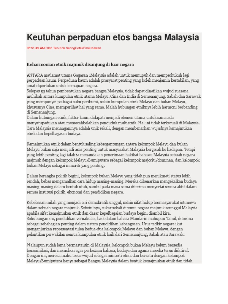 Fonts bab 1. Wan ahmad amir zal bin wan ismail. Kesepaduan dalam kepelbagaian 2. This is a text of a distinguished professor lecture that argues that malaysia dreams of a unity in diversity but it actually exists on cohesion in diversity which means as a society malaysia is characterized by its intense.