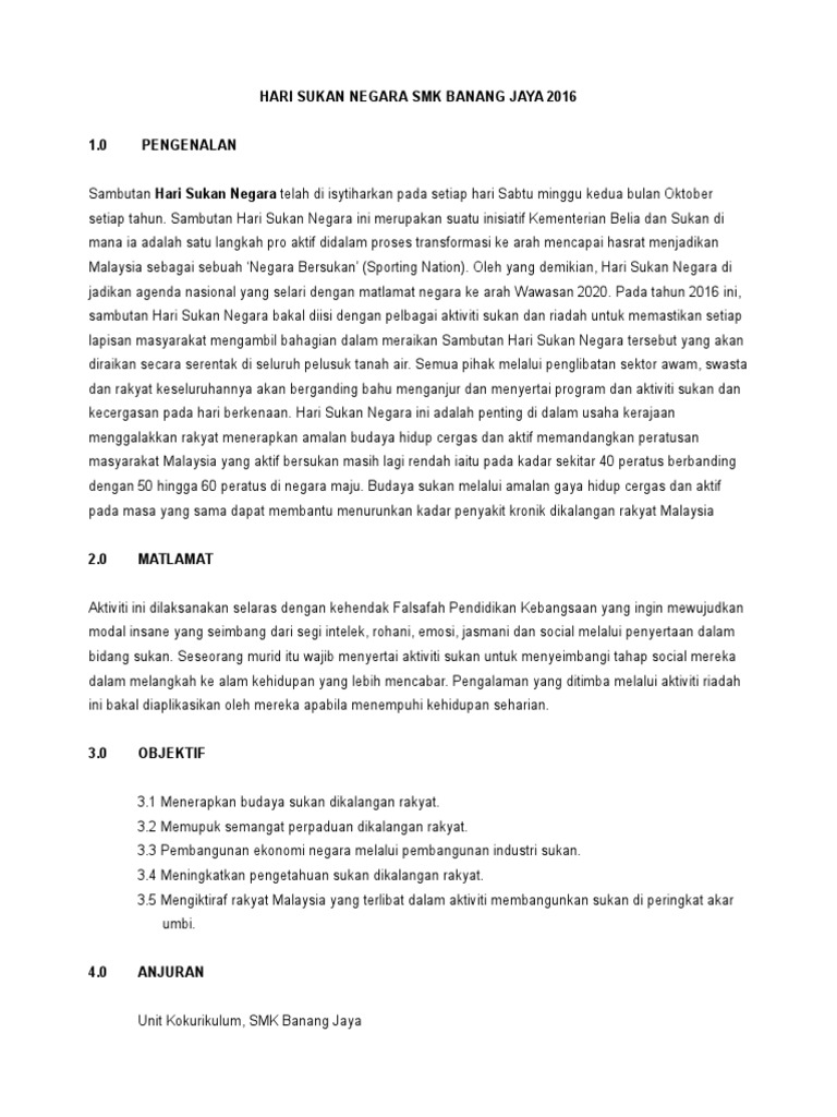 Dasar sukan negara ini merupakan kenyataan ringkas akan tujuan matlamat serta strategi dan cita cita kerajaan kebawah duli yang maha mulia paduka seri baginda sultan dan yang di pertuan negara brunei darussalam berhubung dengan sukan yang merangkumi kedua dua sektor program dan aktiviti yang biasa dirujukkan sebagai a sukan untuk masyarakat sum dan b sukan prestasi tinggi spt. Berat sama dipikul ringan sama dijinjing. Pada tahun 2016 ini sambutan hari sukan negara bakal diisi dengan pelbagai aktiviti sukan dan riadah untuk memastikan setiap lapisan masyarakat mengambil bahagian dalam meraikan sambutan hari sukan negara tersebut yang akan. Sambutan hari sukan negara telah diisi dengan pelbagai aktiviti sukan dan riadah untuk memastikan setiap lapisan masyarakat mengambil bahagian dalam meraikan sambutan hari sukan negara tersebut yang akan diraikan secara.