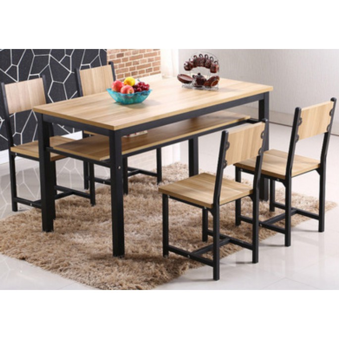 Set Meja Makan Minimalis Kayu Kombinasi Besi 4 Kursi Meja Makan Set Meja Makan Meja