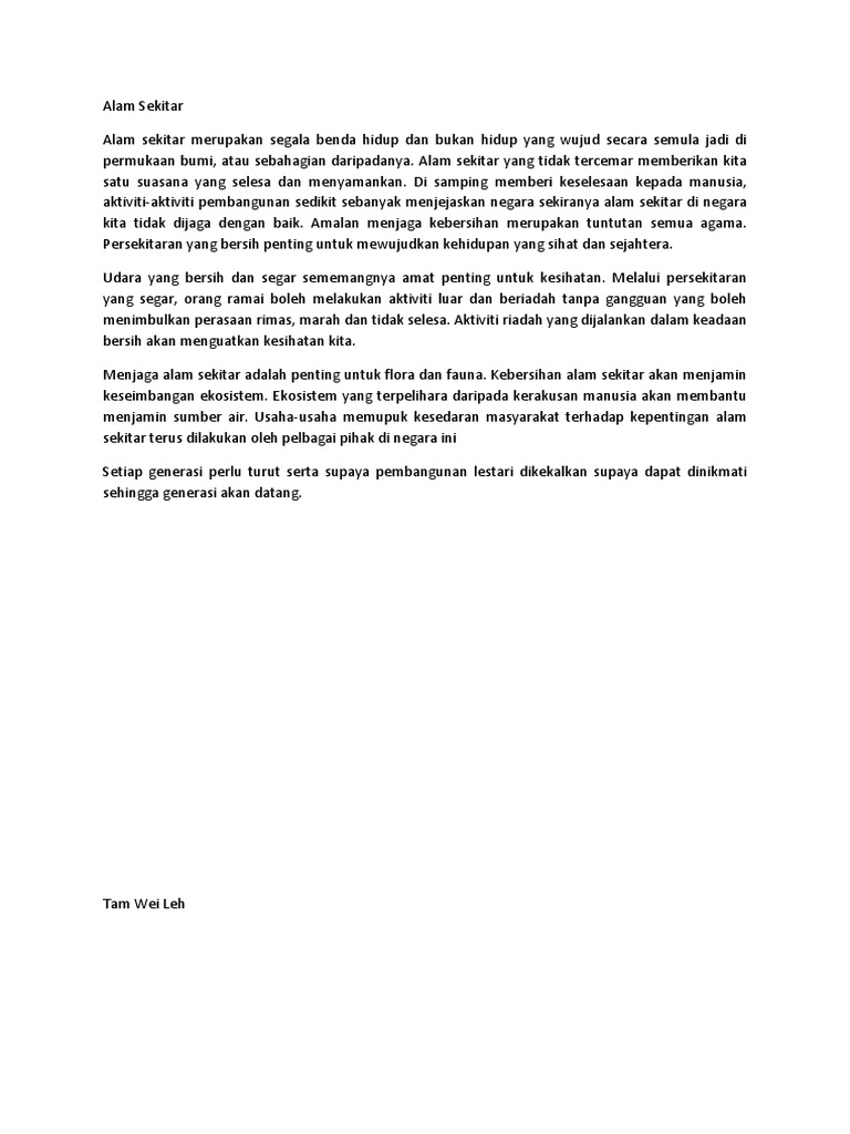 Contoh Karangan Alam Sekitar Rasmi B